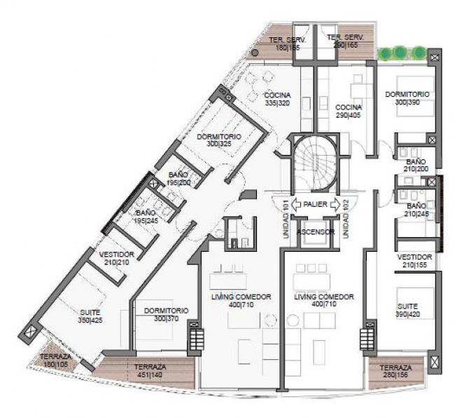 Moderno Edificio de 4 apartamentos de 2 y 3 dormitorios. Living comedor con estufa a leña y salida a terraza. Dormitorio principal en suite con vestidor y salida a terraza. Toilete, cocina muy luminosa con terraza lavadero.