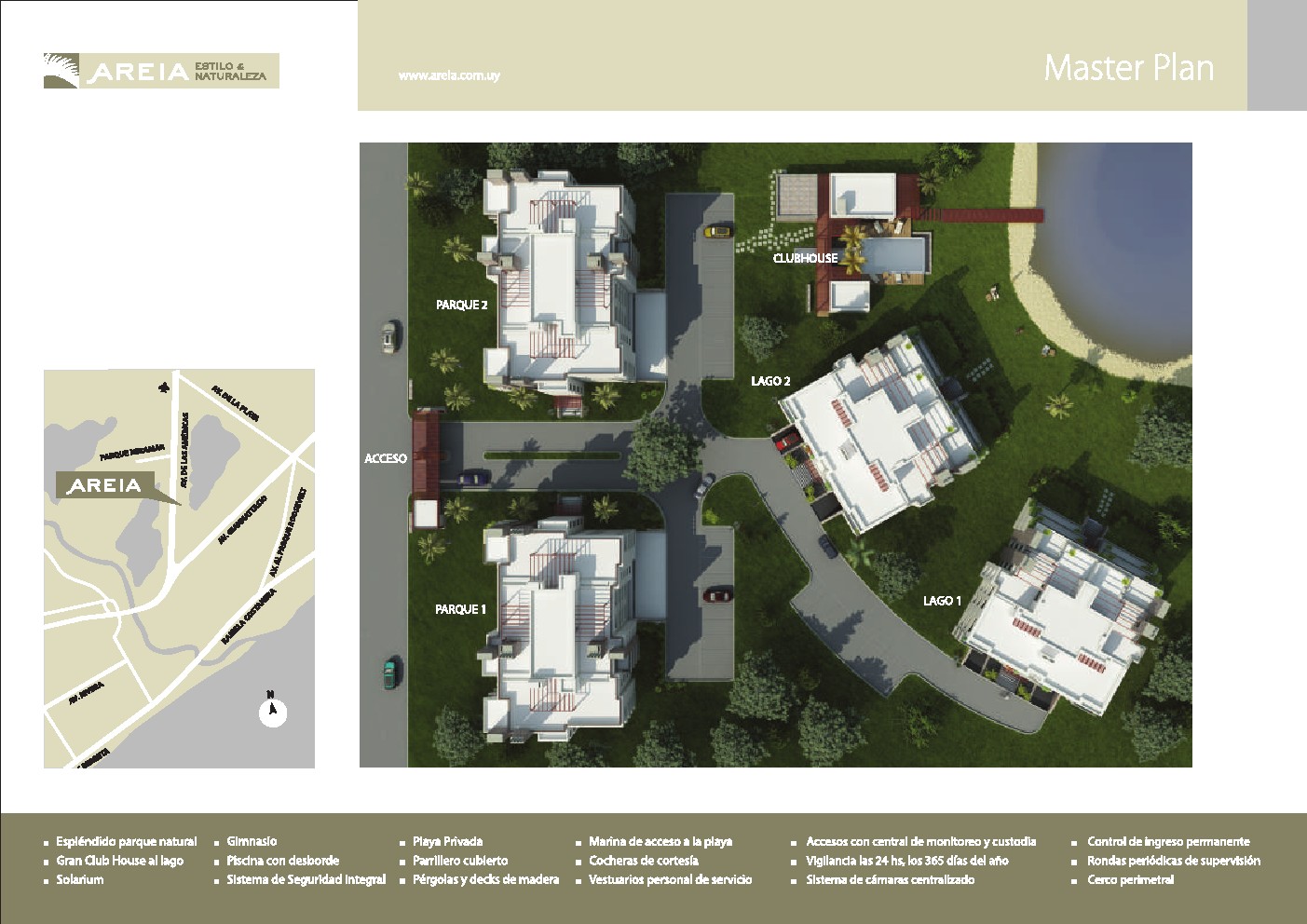 Leer más >000 m2 con costa al lago. Apartamentos de 2, 3 y 4 dormitorios, calefacción por loza radiante. . Seguridad integral. Terrazas con parrillero. Áreas comunes: Piscina y Gimnasio.
