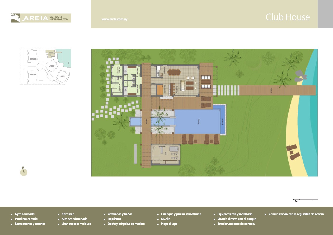 - Parque de más de 10.000 m2 con costa al lago.