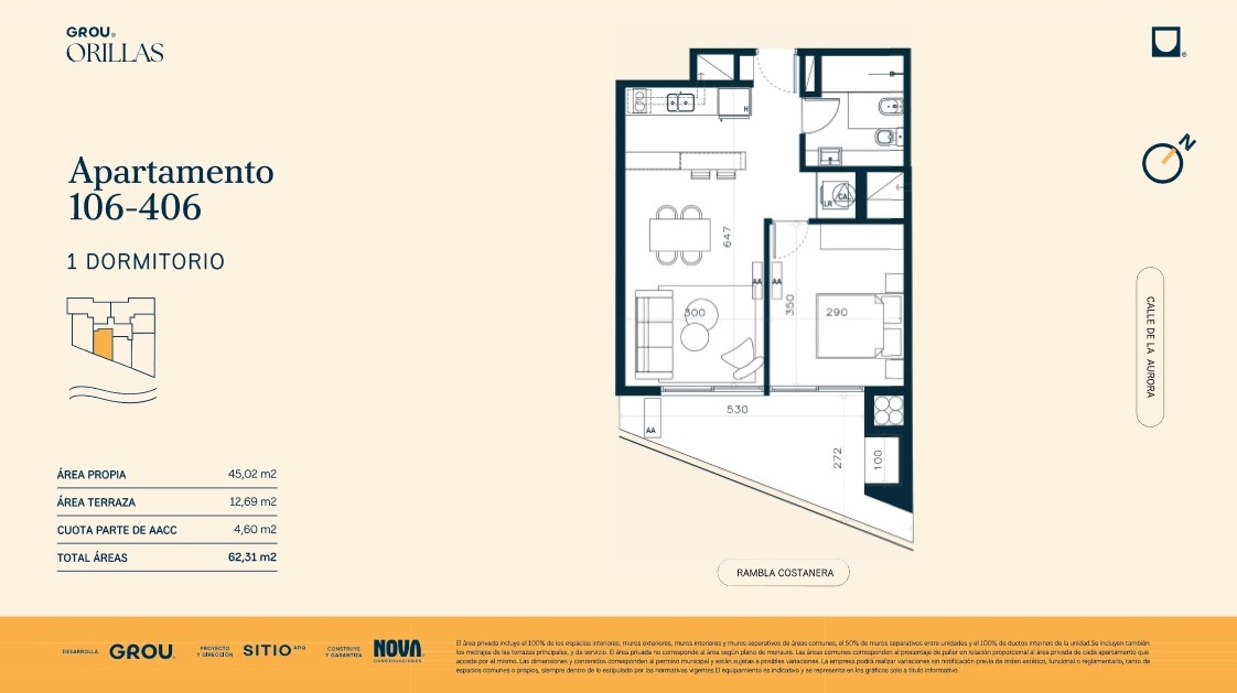 Un nuevo capítulo en la vida, frente a la playa. Grou Orillas se ubica en Rambla Costanera y De la Aurora, en un entorno donde la playa marca el ritmo. Un proyecto pensado para quienes buscan habitar un entorno natural privilegiado, sin renunciar a la cercanía y conectividad de la costa Este. Un lugar que integra la tranquilidad del paisaje con espacios amplios y funcionales.