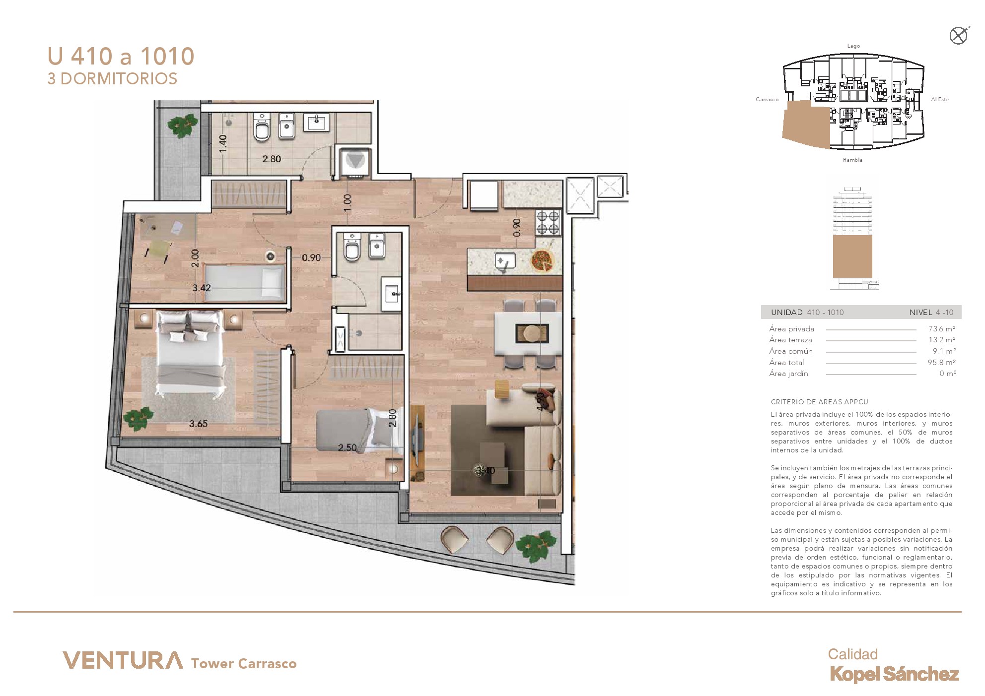 - Calefacción de piso radiante electrico con control individual por ambiente en cada apartamento.